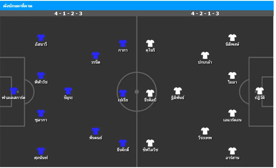 แบงค็อก ยูไนเต็ด (4-2-1-3): ไมเคิล ฟาลเคสการ์ด – ฟิลิป ไมอา, เอแวร์ตอน กอนซัลเวส, จักพัน ไพรสุวรรณ, ทริสตอง โด – วีระเทพ ป้อมพันธุ์, ปกเกล้า อนันต์ – ธีรศิลป์ แดงดา, เฮเบอร์ตี้ แฟร์นานเดส, เจษฎากร ขาวงาม