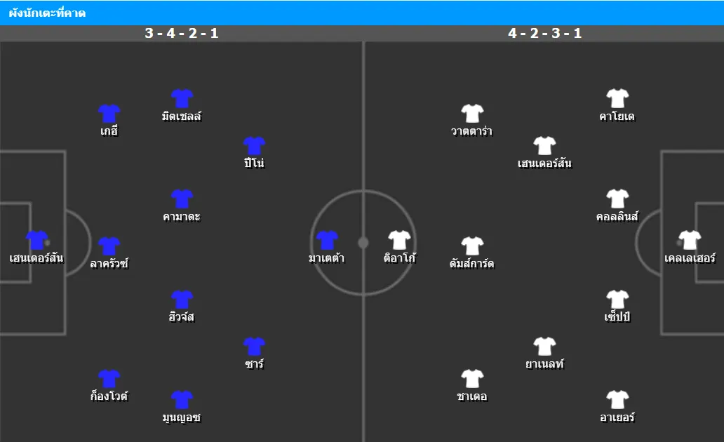 คาดว่าจะใช้ระบบ 4-3-3 โดยมี ติอาโก้ เป็นหน้าเป้า และใช้ ดัมส์การ์ด กับ วาตตาร่า ทำเกมริมเส้น