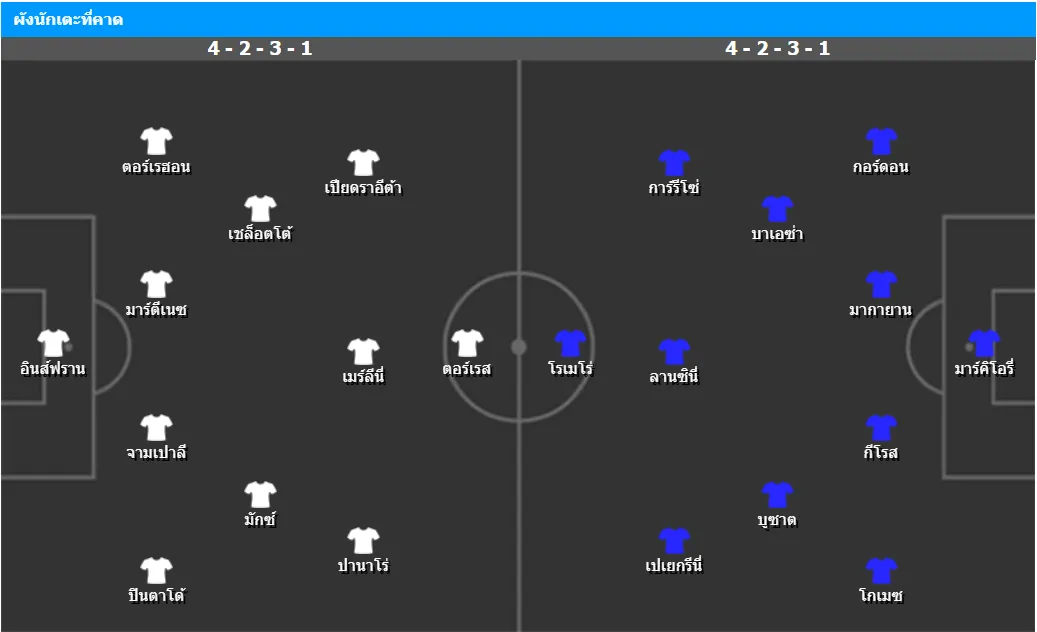 เวเลซ ซาร์สฟิลด์ ไม่มี เอมานูเอล มามมาน่า, โตมาส คาวานาฟ และ เลโอเนล โรลดาน ที่ยังบาดเจ็บ รวมถึง ฮัวกิน การ์เซีย ที่ไม่ผ่านความฟิต ส่วน อีมานอล มาชูก้า ติดโทษแบน แต่แนวรุกยังมี อับราอัม กูเอม่า เป็นตัวความหวัง