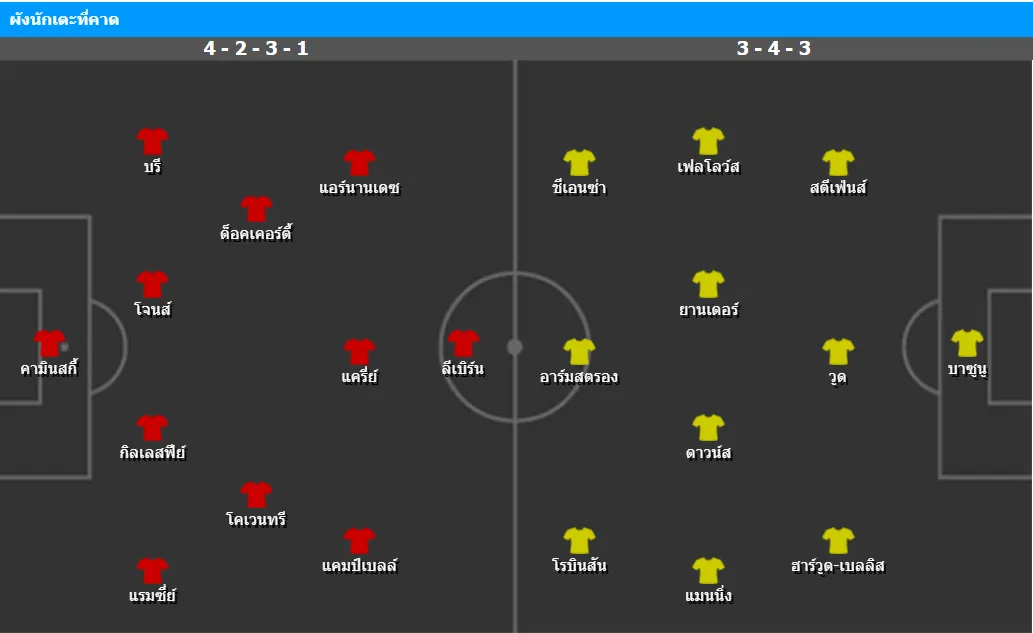 ผู้เล่นคาดการณ์: โธมัส คามินสกี้ – เคย์น แรมซี่ย์, ลอยด์ โจนส์, มาคอลี่ย์ กิลเลสฟีย์, เจมส์ บรี – เกร็ก ด็อคเคอร์ตี้, คอเนอร์ โคเวนทรี – โอเนล แอร์นานเดซ, ซอนนี่ แครี่ย์, ไทรีซ แคมป์เบลล์ – ไมล์ส ลีเบิร์น
