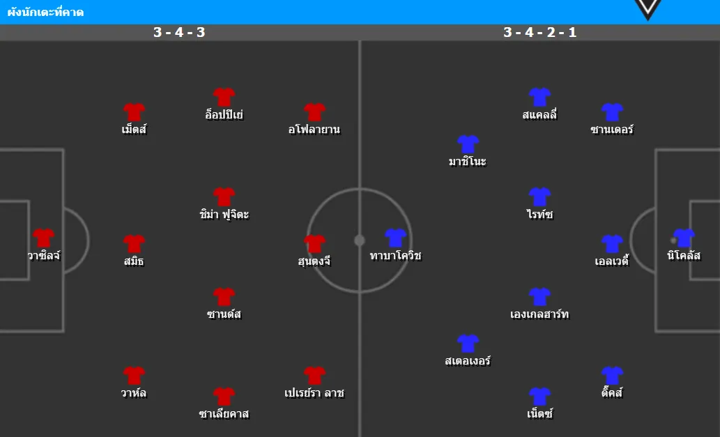 น่าจะใช้ระบบ 3-4-2-1 โดยมีแนวรุกผสมระหว่าง ซูโตะ มาชิโนะ, เควิน สเตอเงอร์ และ ฮาริส ทาบาโควิช