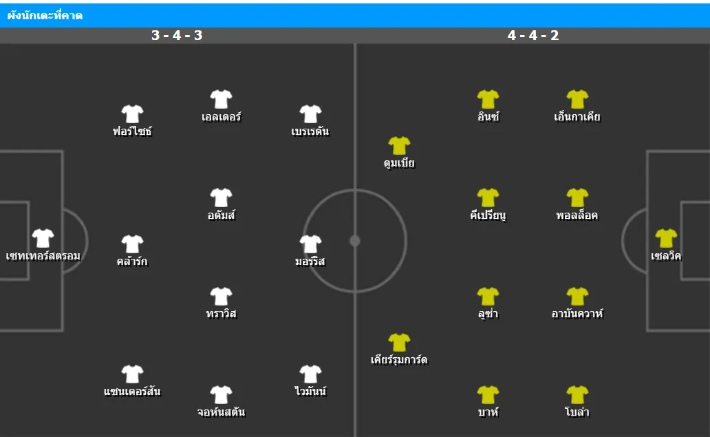 ดาร์บี้จะเปิดเกมรุกตั้งแต่เริ่ม ใช้ความมั่นใจจากฟอร์มที่ร้อนแรงบวกกับเสียงเชียร์ในบ้าน ควบคุมจังหวะเกมและสร้างโอกาสได้มากกว่า วัตฟอร์ดจะเน้นตั้งรับเป็นหลักและรอจังหวะสวนกลับเร็ว ซึ่งอาจสร้างปัญหาได้บ้าง แต่ด้วยฟอร์มโดยรวม น่าจะโดนดาร์บี้กดดันอย่างหนัก