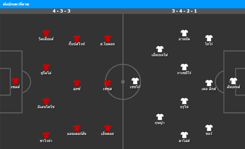 คาดว่าจะใช้ระบบ 4-2-3-1 โดยมี ราสมุส ฮอยลุนด์ ยืนหน้าเป้า