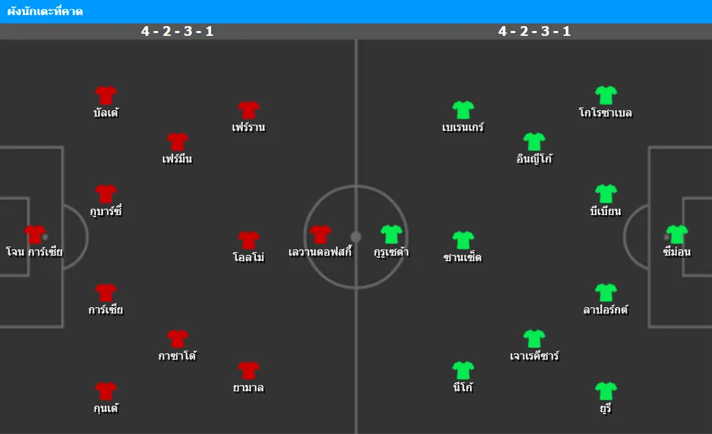 เกมนี้บาร์เซโลน่าจะคุมจังหวะได้มากกว่า ใช้การครองบอลและหาพื้นที่เข้าทำ ขณะที่บิลเบาจะรอจังหวะโต้กลับจาก นีโก้ วิลเลียมส์ แต่โอกาสคม ๆ น่าจะมีไม่มาก
