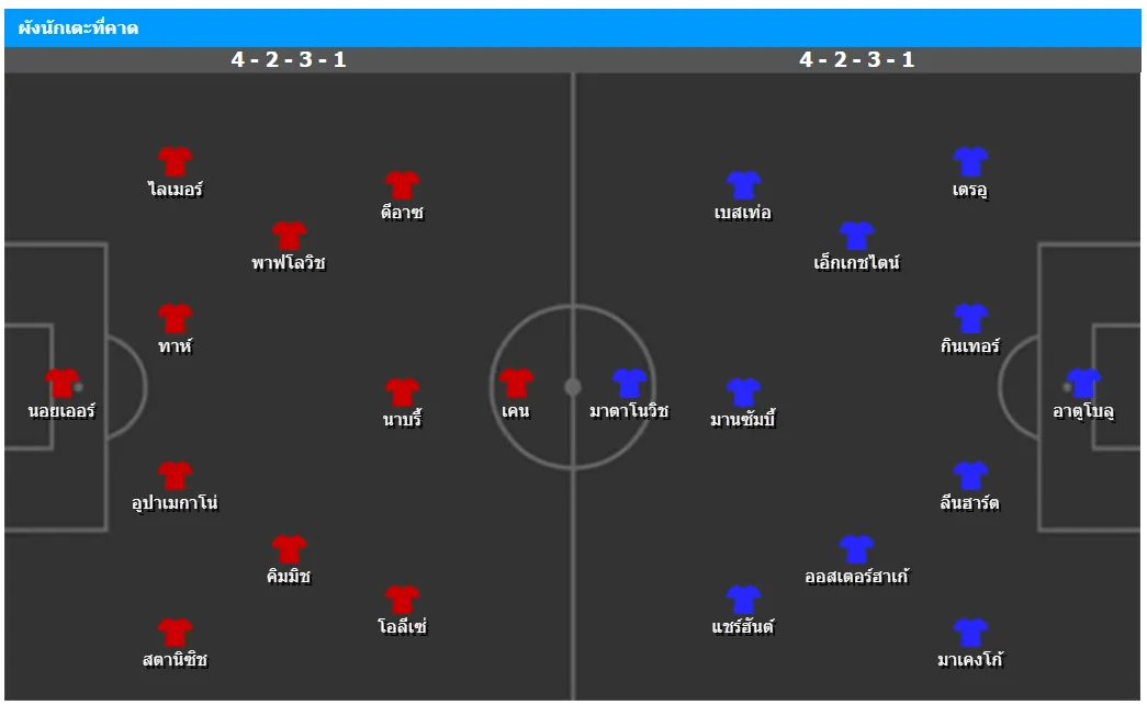 ผู้เล่นไม่พร้อม / ต้องลุ้นความฟิต: มานูเอล นอยเออร์, จามาล มูเซียล่า, อัลฟอนโซ่ เดวิส, ราฟาเอล เกร์เรโร่