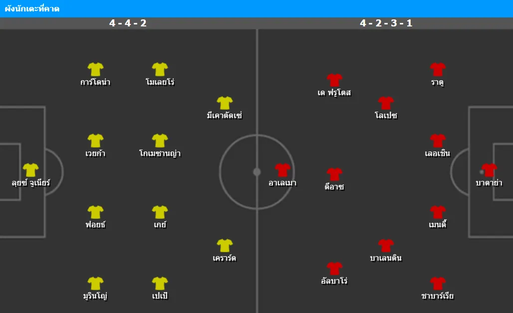 คาดว่าจะใช้ระบบ 4-2-3-1 โดยให้ ราอูล เด โตมัส เป็นหน้าเป้า