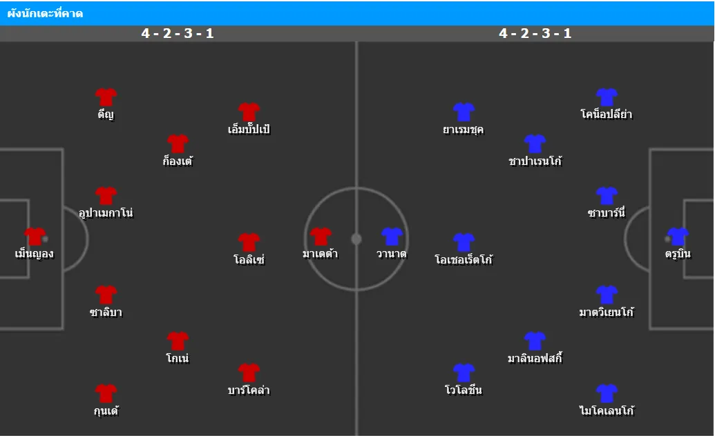 ฝรั่งเศสอาจเล่นระบบ 4-2-3-1 โดยมีผู้รักษาประตู ไมค์ เมนญ็อง แดนหลังใช้ ฌูลส์ กุนเด้, วิลเลียม ซาลิบา, ดาโยต์ อูปาเมกาโน่, ลูก้า ดีญ เหนือมิดฟิลด์ตัวรับอย่าง เอ็นโกโล่ ก็องเต้ และ มานู โกเน่ แนวรุกมี บราดเล่ย์ บาร์โคล่า, ไมเคิ่ล โอลิเซ่, คีลิยัน เอ็มบั๊ปเป้ สนับสนุนหน้าเป้า ฌอง-ฟิลิปป์ มาเตต้า