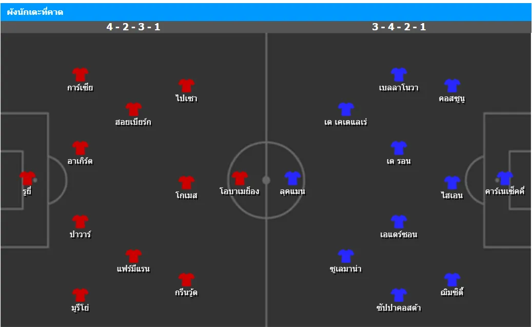 โรแบร์โต้ เด แซร์บี้ หมุนทีมต่อเนื่อง เกมนี้ไร้ เอเมอร์สัน พัลไมรี่ (แบน) และมี เจฟฟรี่ย์ ก็องดอกเบีย, อามีน ชูรี่, อาเหม็ด ตราโอเร่ เจ็บ แต่ได้ อีกอร์ ไปเซา คืนตัวจริงร่วมกับ โอบาเมย็อง, เมสัน กรีนวู้ด และ อังเคล โกเมส
