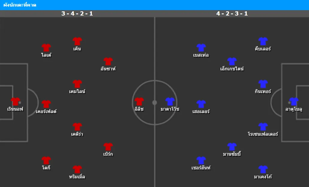 คาดว่าจะใช้ระบบ 3-4-2-1 โดยมี เควิน โฟลลันด์ เป็นหน้าเป้า