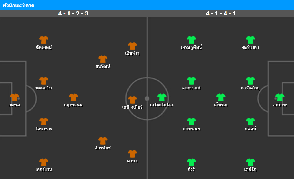 เกมนี้ “เดนี จูเนียร์” จะยืนหอกตัวเป้า พร้อมด้วย “เปโดร ตานา” และ “เอ็นจีวา” ขึ้นเกมริมเส้น