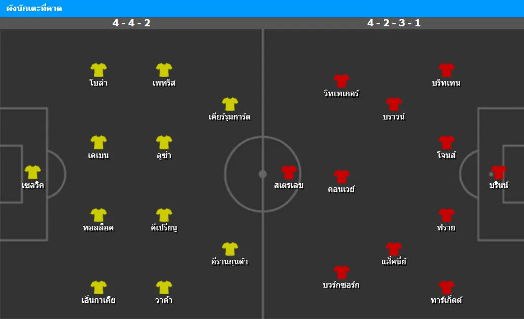 คาดว่าจะใช้ระบบ 4-4-2 โดยมี ลูก้า เคียร์เกอร์ และ เนสตอรี่ อิรานกุนด้า ยืนคู่หน้า