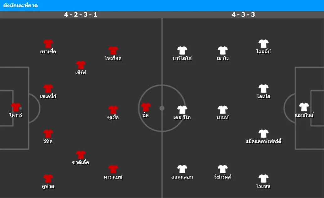เช็กเหนือกว่าทุกมุม น่าจะเดินเกมสบาย แม้จะไม่เต็มสูบแต่ก็น่าจะยิงเก็บสามแต้มแบบไม่ลำบาก
