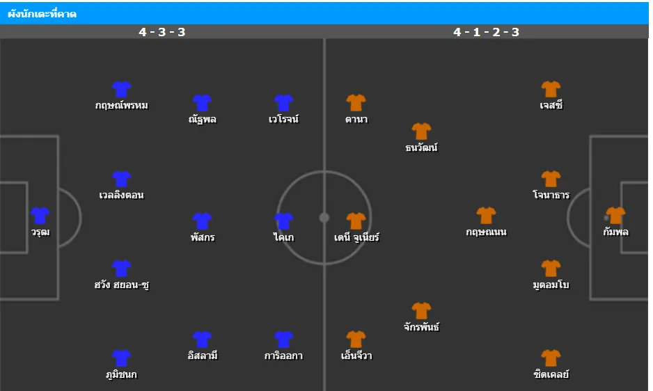 วรุฒ เมฆมุสิก – กฤษณ์พรหม บุญสาร, เวลลิงตัน พรีออรี, ฮวัง ฮยอน-ซู, ภูมิชนก – ยาเซียร์ อิสลามี, พัสกร เบี้ยวทุ่งน้อย, ณัฐพล วรสุทธิ์ – ดิเอโก การิออกา, ไคเก เลเมส, เวโรจน์ ป้อมบุบผา
