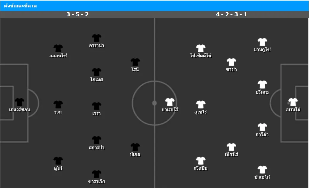 สกอร์รวมคาดการณ์: ต่ำกว่า 2.5 ลูก