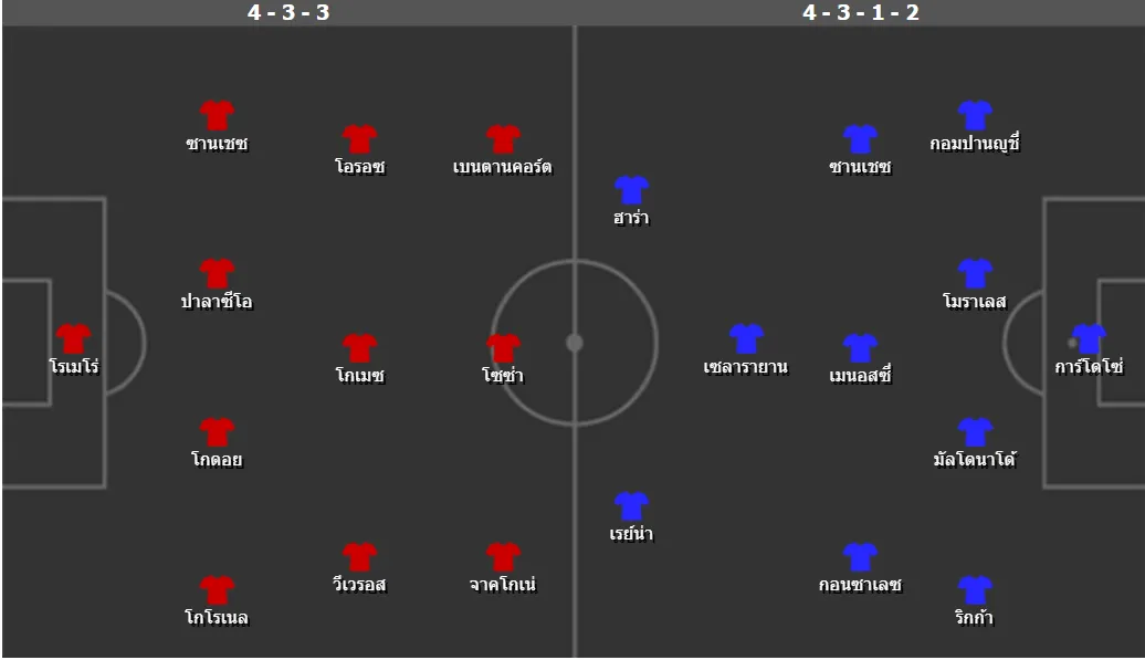 เบลกราโน่ (4-3-1-2): นาอูเอล โลซาด้า – ฟรังโก้ เนโกร่, อเลฮานโดร เรย์, มาติอัส โมราเลส, เซบาสเตียน ลูน่า – อัลโด ลองโก้, ฟาคุนโด้ ฟาริอาส, คริสเตียน โอโบโรซา – ไบรอัน เรย์น่า, ฟรังโก้ ฮาร่า