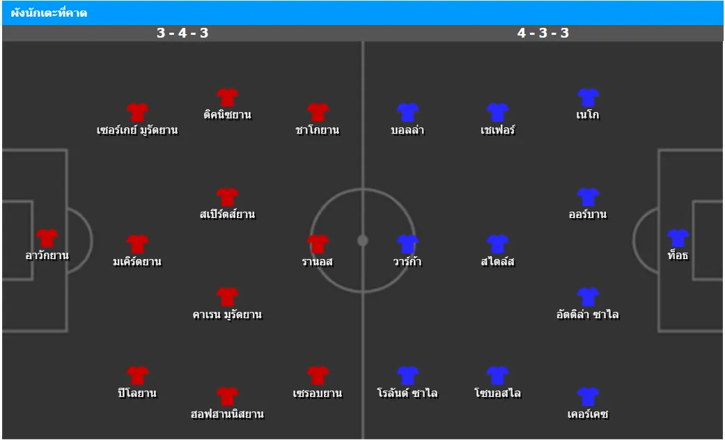 อาร์เมเนีย: จุดแข็งคือเล่นในบ้าน มีแรงสนับสนุนจากแฟนบอล และอาจตั้งแท็กติกเน้นรับแล้วสวนกลับได้ แต่จุดอ่อนชัดคือคุณภาพแนวรับและเกมรุกยังเป็นรองมาก