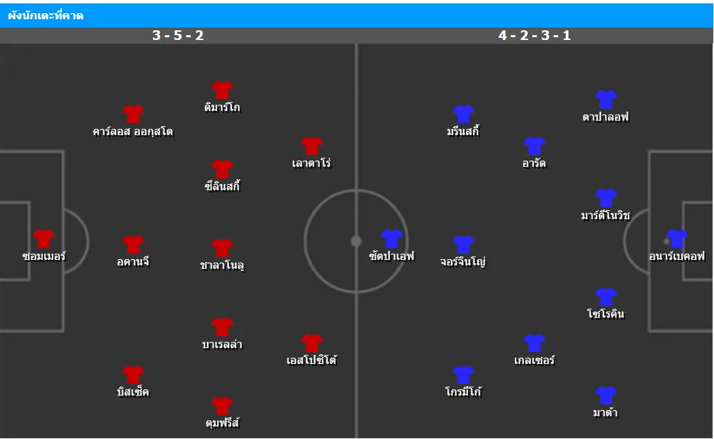 ราฟาเอล อูราซบัคติน ยังไร้ชัยในรอบแบ่งกลุ่ม เกมนี้ไม่มีสองหัวหอกแซมบ้า ชูเอา เปาโล และ เอลแดร์ ซานตาน่า ที่เจ็บ ส่วน เอ็ดมิลสัน ต้องเช็กฟิต คาดส่ง ดาสตัน ซัตปาเอฟ ยืนหน้าเป้า โดยมี จอร์จินโญ่ เป็นเพลย์เมกเกอร์ และอารัดจับคู่เกลเซอร์ในแดนกลาง