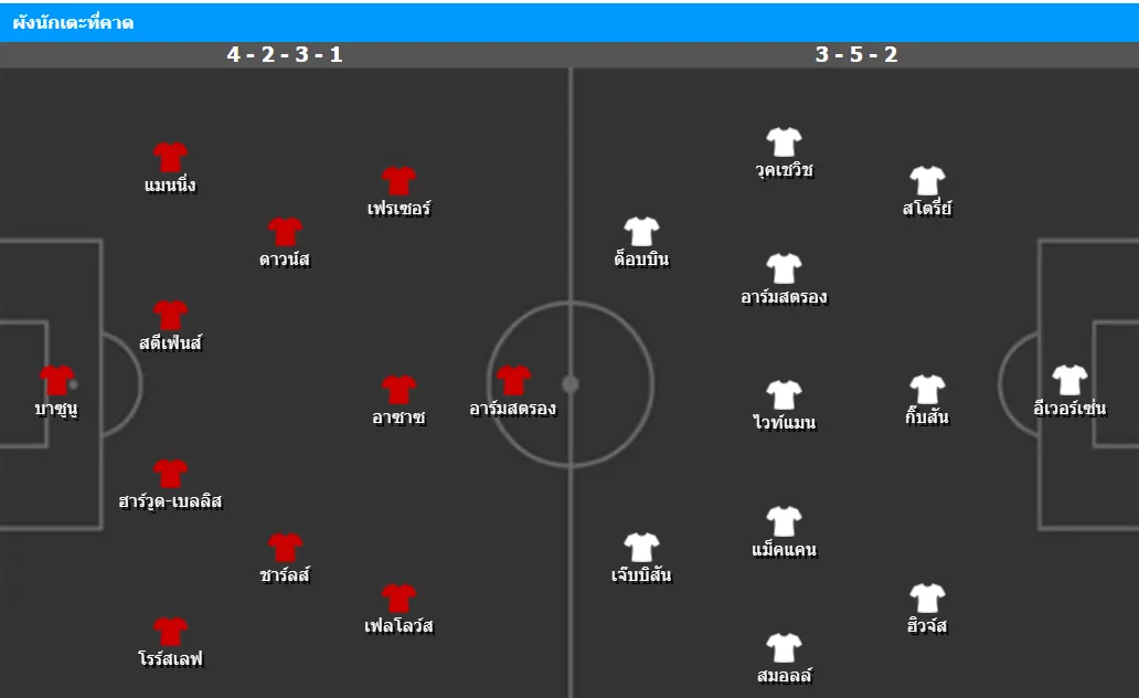 คาดว่าจะใช้ระบบ 3-5-2 โดยมี มิลูติน ออสมายิช ยืนคู่กับ ลูอิส ด็อบบิน ในแดนหน้า