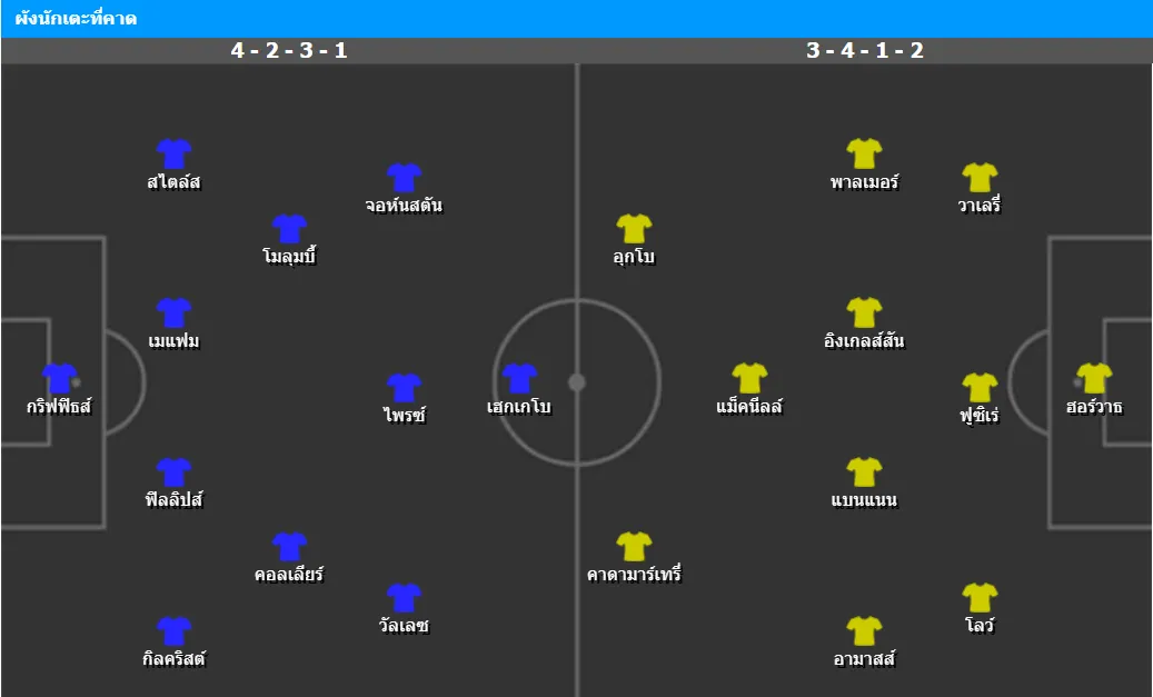 คาดการณ์ใช้แผน 3-4-1-2 เพื่อเน้นความเหนียวแน่นในแนวรับ และหวังสวนกลับ