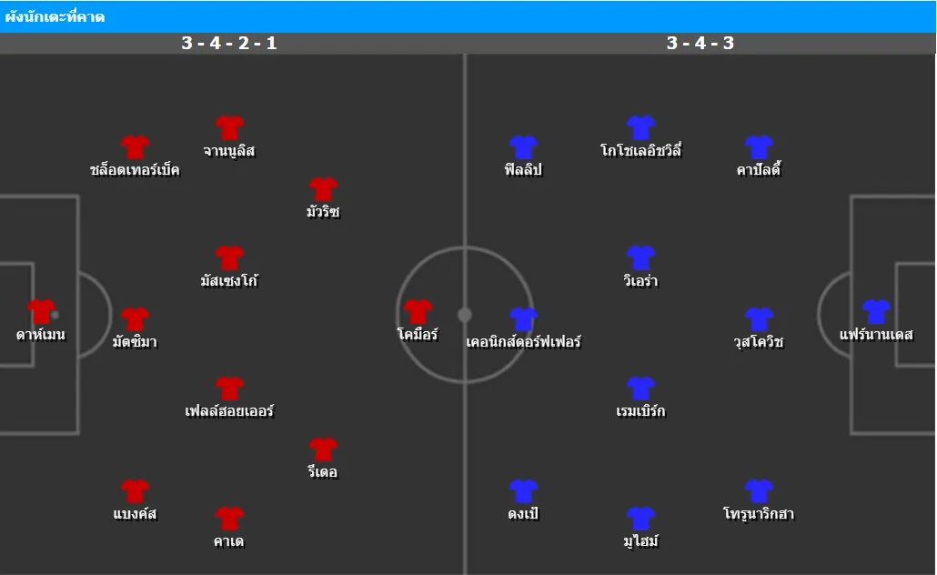 ผู้เล่นคาดการณ์ในแนวรุกและแดนกลางมีตัวหลักอย่าง ฟาเบียน รีเดอ, อเล็กซิส โคล้ด-มัวริซ และ เมิร์ต โคมือร์ เป็นแกนหลักในการสร้างสรรค์เกม