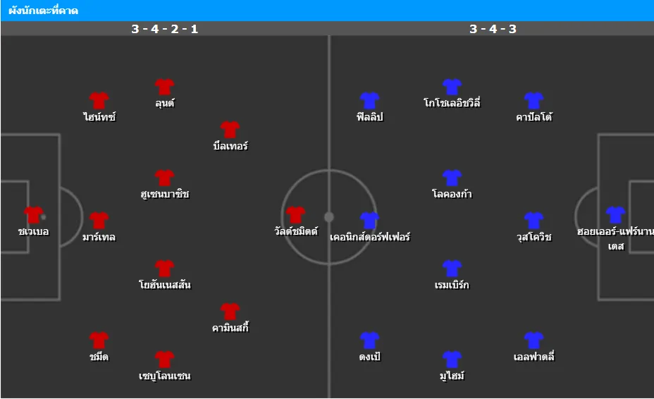 ยังขาด ราฟ ฟาน เดน เบิร์ก, ยาน ธีลมันน์, ติโม ฮือเบอร์ส และ ลูก้า คีเลียน ที่มีอาการบาดเจ็บ