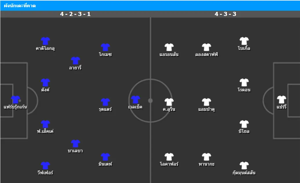 คาดว่าจะใช้แผน 4-2-3-1 โดยมี ดาเนียล เวลเบ็ค เป็นหน้าเป้า พร้อมตัวรุกอย่าง มินเตห์ และ รุตแตร์