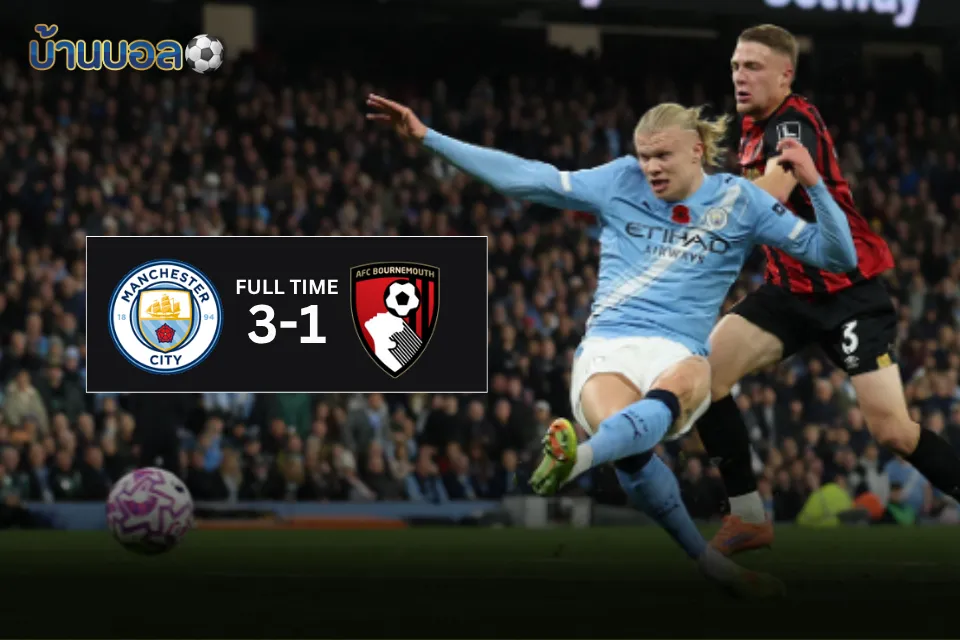 ศึกพรีเมียร์ลีก อังกฤษ ที่สนามเอติฮัด สเตเดี้ยม “เรือใบสีฟ้า” แมนเชสเตอร์ ซิตี้ โชว์ฟอร์มดุดัน เปิดบ้านเอาชนะ บอร์นมัธ ไปแบบไม่ยาก 3-1 โดยเกมนี้ เออร์ลิ่ง ฮาแลนด์ ยังคงเป็นพระเอกหลังเหมาคนเดียวสองประตู พาทีมขยับขึ้นรองจ่าฝูงได้สำเร็จ